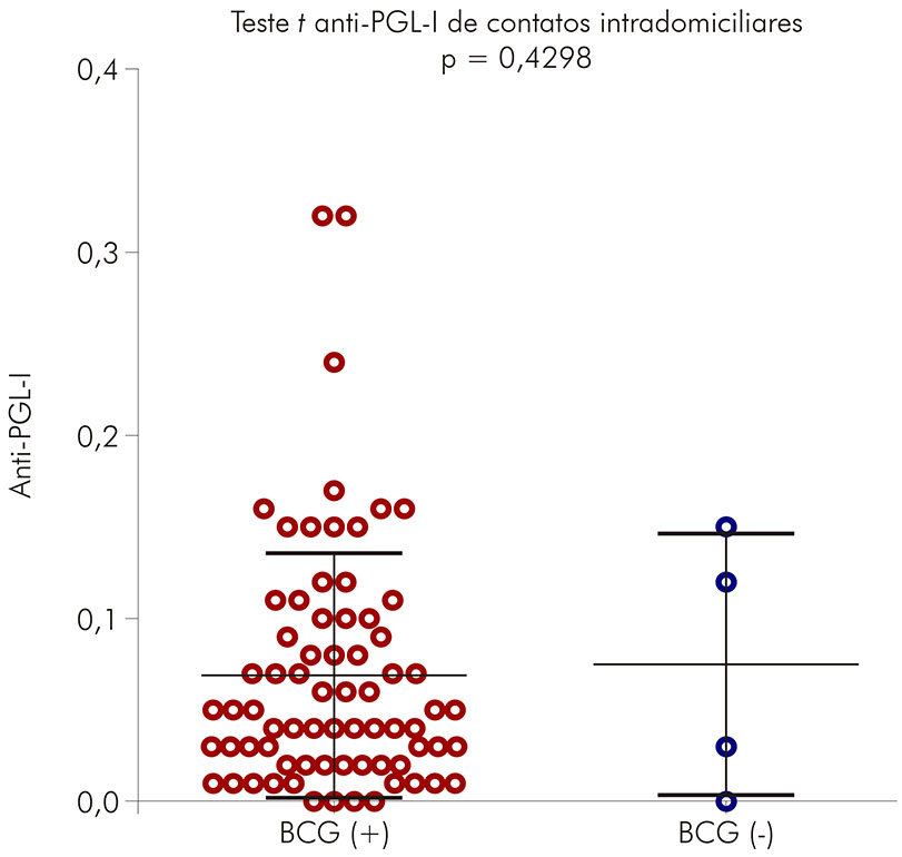 A maior média dos níveis de anti-PGL-I nos indivíduos não vacinados demonstrou que existe uma tendência de elevação dos títulos desse antígeno nesse grupo, o que comprova ser a vacina uma grande aliada no controle da doença. A Organização Mundial da Saúde reafirma a importância da vacina BCG, criando uma norma para a administração da mesma de acordo com a história vacinal do contato, ficando dessa maneira a prescrição da vacina: em caso de incerteza de cicatriz vacinal, aplicar uma dose; sem cicatriz ou com uma cicatriz, aplicar uma dose; e com duas cicatrizes, não aplicar qualquer dose5,15.